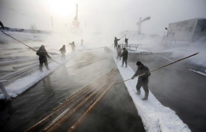 5. Плотогонщики древесины - профессия не из легких. В их обязанности входит переправка только что срубленного леса по течению реки