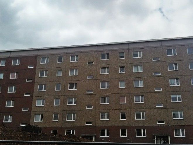 Многие считают, что в Германии все живут в миленьких пряничных домиках из сказки, но в реальности дома в спальных районах бывшей ГДР (да и в некоторых западных землях) выглядят примерно так: