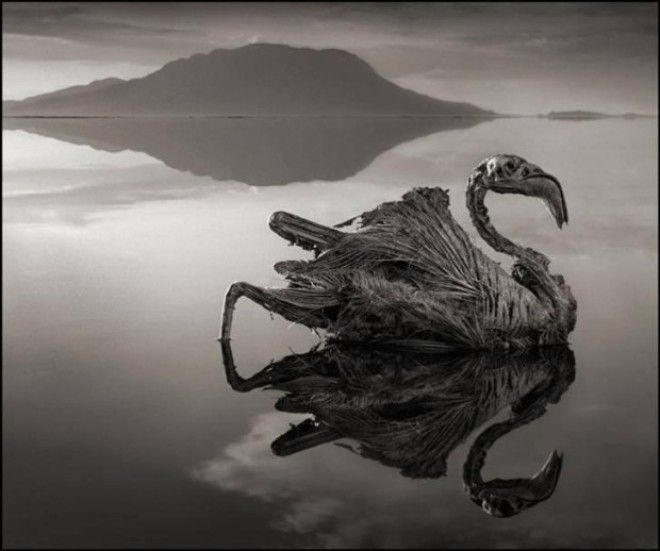 Кстати, впервые уникальную «способность» Натрона убивать животных и превращать их в статуи обнаружил фотограф Ник Брандт во время своего очередного путешествия по Африке. Он сделал репортаж, расположив останки так, будто эти птицы и летучие мыши живы, что сделало его кадры похожими на сцены из фильма ужасов.