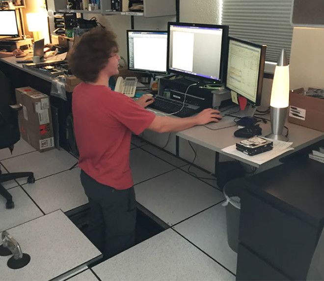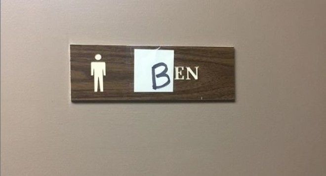 1. Бен — единственный парень в офисе, так что мы просто переименовали дверь в туалет