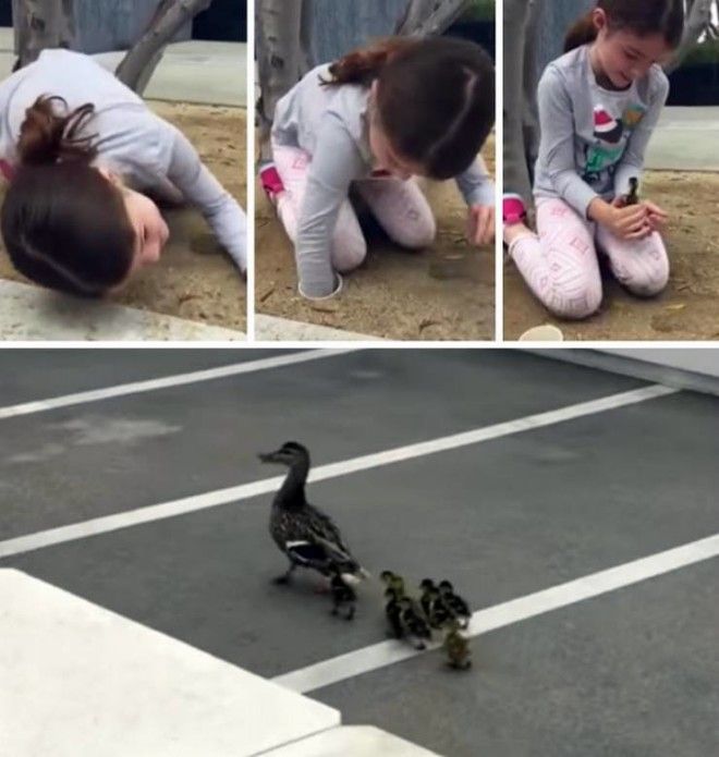 11. Девочка вытащила крошечных утят из дренажной трубы