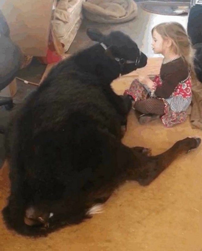 14. Этой малышке просто приглянулся теленок и она привела его домой…