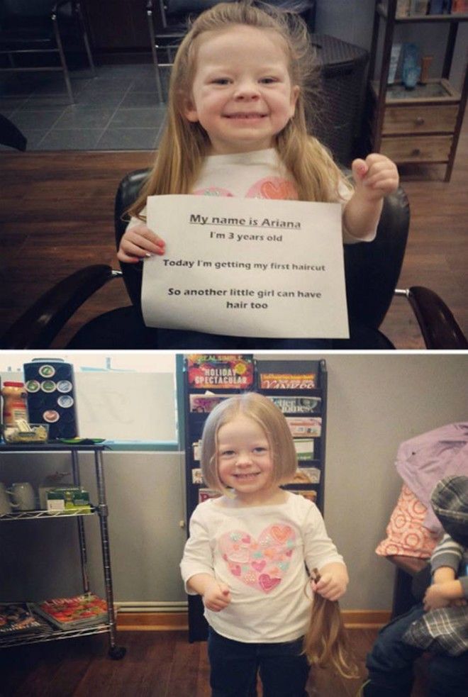 2. Девочка добровольно пожертвовала свои волосы другой девочке, которая борется с раком