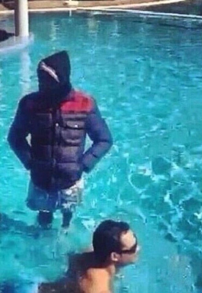 Ничего необычного, просто одетый парень в бассейне
