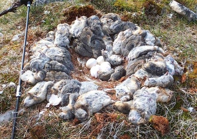 Сова убила более 70 леммингов и обложила их тушками своё гнездо