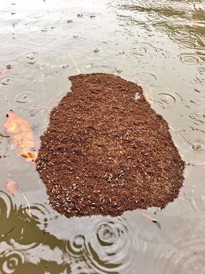 Красные муравьи создали плавучий остров, чтобы пережить наводнение
