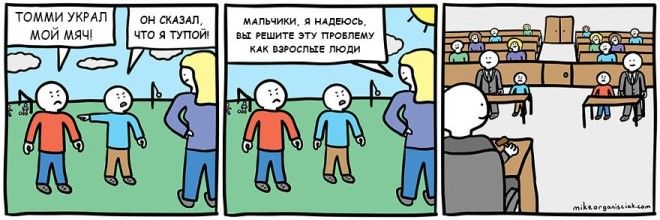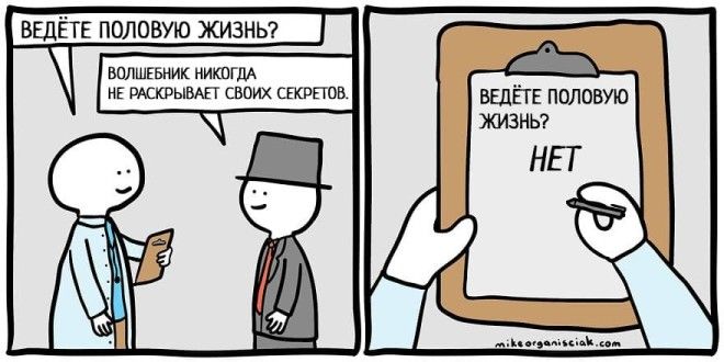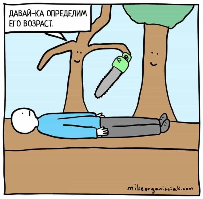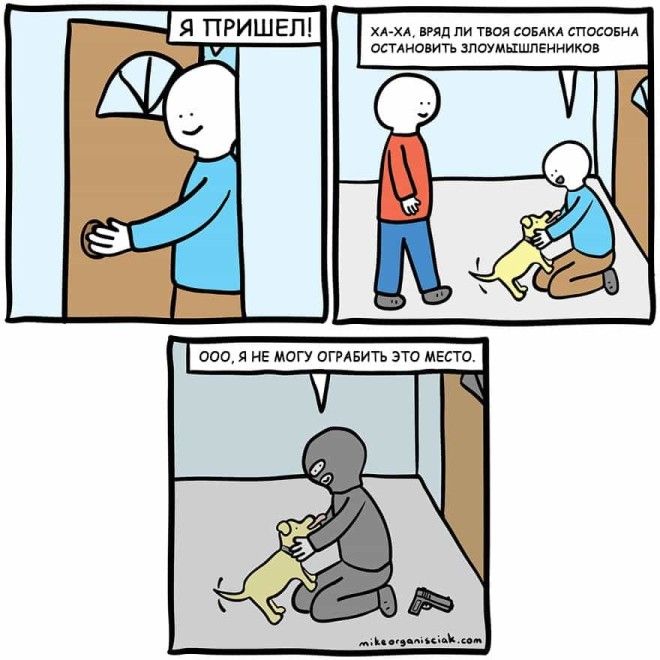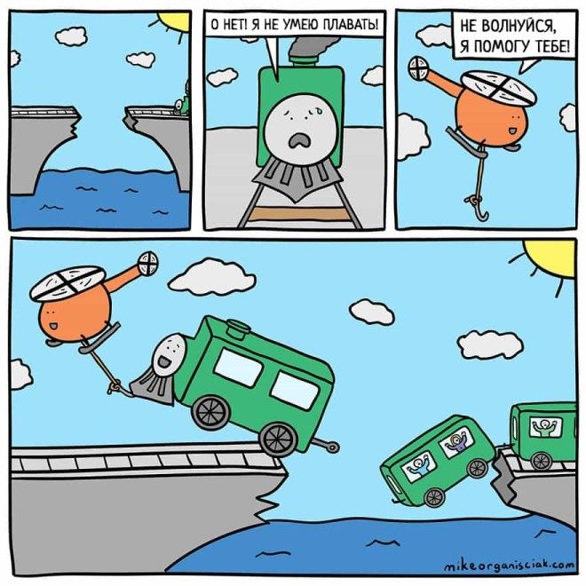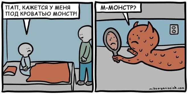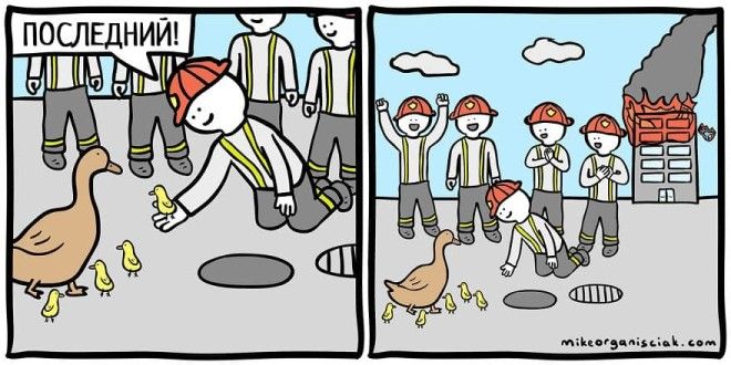 Однажды человек по имени Майк Органисиак решил, что хочет научиться рисовать комиксы. У него совершенно не было опыта, но он решил не отступать и начал создавать по одной странице в день. Через 100 дней он решился показать свой результат интернету и пришел к успеху. Эти изображения, содержащие в себе горстку черного юмора, развеселили зрителей и принесли автору известность. Предлагаем вам ознакомиться с некоторыми его работами.