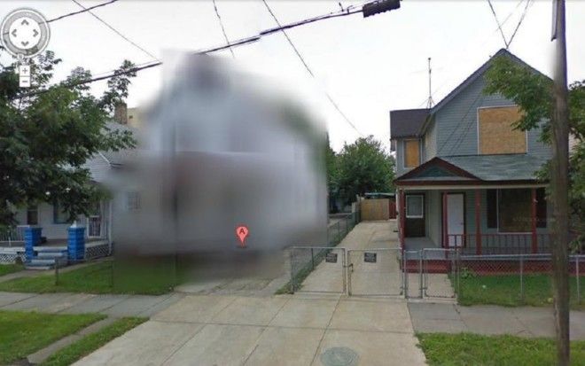 Ариэль Кастро - человек, которые годами удерживал в плену в своем доме нескольких женщин, издевался над ними и насиловал. Одна из них даже родила ребенка, и ребенок также жил в неволе. В конце концов женщинам удалось позвать на помощь, Кастро отправился в тюрьму, где в итоге покончил с собой. На картах Google этот дом размыт, потому что, во-первых, снимок был сделан в то время, когда в этом доме страдали пленницы. Во-вторых, сейчас дома уже нет, его снесли; однако локацию Google еще не обновил - вот отсюда и заблюренное изображение.
